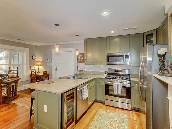 Terrific ground floor unit in the Historic Frederick Shaffer House. This condo boasts a screened porch and gardens, as well as an open floor plan with master suite and a second bedroom and full bathroom. The original warm heart-pine floors, exposed brick fireplaces and details along with the modern amenities in the kitchen and baths make this a wonderful place to call home full time or as a second home. Gated parking at back of building off Pitt street offers one included parking space. This is a truly charming home in a great location!