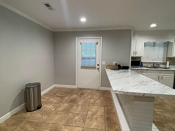 This 3 bedroom, 2 bathroom brick home in Opp has just under 2200 heated and cooled square feet, a large garage and a carport, an enclosed back patio, and a large lot measuring approx .75 acres. The interior of the home has a spacious kitchen with an eat-in bar, plenty of counter space, tile flooring, and room for an island to be put into the kitchen. New flooring, new paint, new molding, and new can lighting has been done throughout the home. The hall bath also has new flooring, counters and cabinets. The main bed and bath has a large walk-in closet, separate dressing area from the bath, and a walk-in tile shower. The other 2 bedrooms are ample size and have spacious closets. The sunken den has a fireplace with gas logs and a door that leads to the back enclosed porch/patio, the separate dining room is just off the kitchen and has plenty of room for a large farmhouse table, and the double doors, which is the front entrance, lead into the main area of the home.