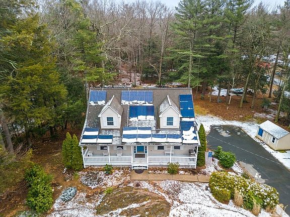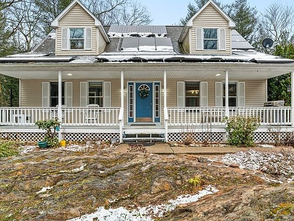 If you love nature this is the property for you. This large 4-bedroom Cape is privately situated on 3.98 acres with your own private trails surrounded by 150 acres of conservation land owned by the town that has a babbling brook, cross country, horseback and walking trails. The living room has beamed/cathedral ceilings, an interior balcony and open floor plan. The kitchen is open to the dining room that has French doors to the deck that overlooks the large backyard. 1st floor main bedroom with walk in closet, full bath with jacuzzi tub and shower. Access to the exterior deck. The 2nd floor has 3 nice sized bedrooms with ample closet space and a full bathroom. Need extra space? No problem, there is 400+/- SF of finished basement with a family room, half bath, laundry area, access to the drive under garage and French doors that lead to the back yard. Bring your paint brush & fresh ideas. Property being sold as-is, inspections for information only. Offer Deadline of Monday @ 5pm.