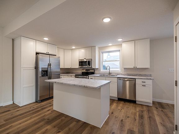 Charming 2 plus bedroom home that is fully renovated with all the modern flair! Enjoy this move-in ready home that features modern colors, new flooring throughout, painted trim, new windows, new vinyl siding, new mechanics (furnace 2025, central air 2024, water heater 2024), new covered porch, and new concrete walkway. Main floor features a modern kitchen with white cabinets, new stainless steel appliances, large center island for entertaining, new vinyl floors, main floor living, new bathroom added, 9' ceilings, comfortable living room, informal dining room, and spacious laundry room. The second story offers a large bedroom, den, and unfinished attic for storage. Don't miss your opportunity to own an affordable home that has all the updates done for you!