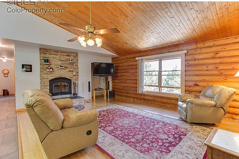 Live large in this custom LOG residence! Welcoming entryway leads to vaulted Living Room; anchored by a beautiful stone FP. Open plan. Kitchen w/island, quartz, dbl ovens. B'fast nook. Dining Rm can accommodate large gatherings. Master w/ensuite BA. BD #2 w/private BA. BD 3&office share full BA w/laundry & storage. Walkout lvl Family Rm w/wd stove & dbl French doors to lower patio; 3/4 BA; unfinished space. Need space for your RV? Boat? Mountain toys?? Huge RV garage w/220v for enclosed storage.