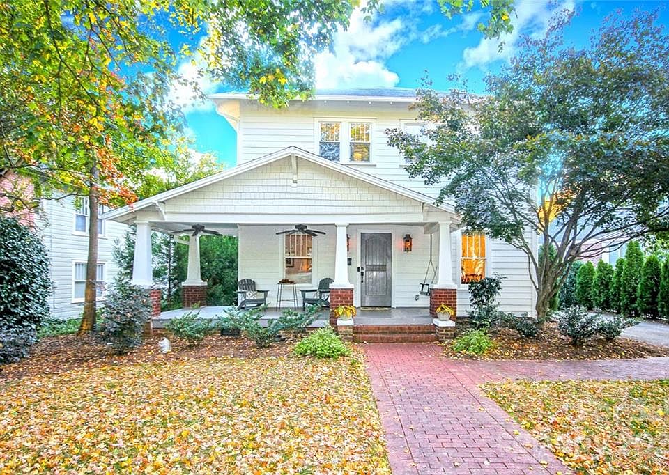 Historic charm meets modern updates! This inviting Eastover home, built in 1919, has been carefully maintained and renovated and features plenty of living space, hardwood floors, high ceilings, and natural light. Main floor includes a living room, dining room, kitchen, breakfast room, family room, powder room and a guest room with en suite bath. The kitchen features white cabinetry, quartz counters and Wolf appliances, opening to the breakfast area and family room. Upstairs features a sitting area (could be play room or office) with three bedrooms, including a spacious primary suite featuring walk in closet, large bath, sitting area and private covered porch. A partially covered rear deck overlooks a freshly landscaped and hardscaped backyard. Walkable to neighborhood park with tennis, bball and playground, restaurants and more! Commute to Uptown and the major hospitals is app. 5 minutes. All new exterior paint, slate patio and mudroom with drop zone (Summer 2022).