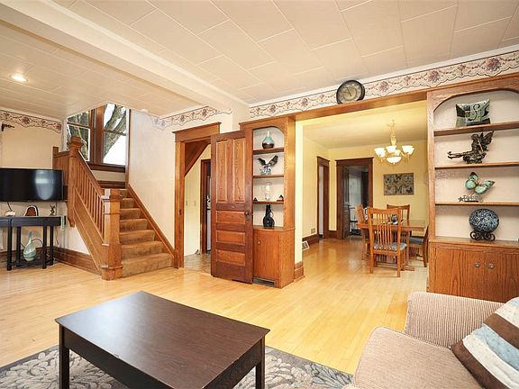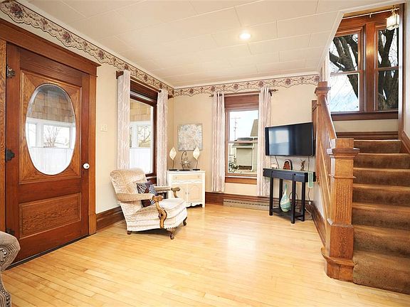 Brillion buyers! Welcome to all the space desired in this Victorian style 2 story home. Main floor welcomes with hardwood floors throughout. Living room overlooking screened in porch. Formal dining room with built-ins and plenty of character. First floor bedroom and updated full bath. Office/flex room off the kitchen. Upstairs offers 4 more bedrooms and half bath, with plumbing available to add a shower. Lower level features family room with cozy gas fireplace. 3 car detached garage. Both charm and character!