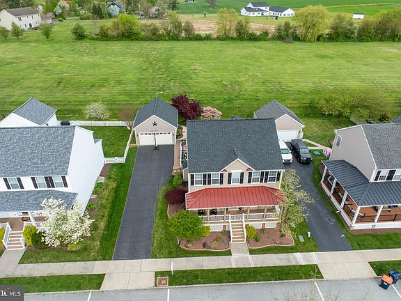 Welcome to 214 Columba Street – situated on a luxury lot in the highly sought after New Daleville Community. Stunning at first glance, and loaded with upgrades, you’ll soon realize this exceptional home has been meticulously cared for. Walking up the walkway you will see how the premium level lot backs up to open space, has direct driveway access from the street (no alleys to deal with) and ample driveway parking for guests in front of a detached two car garage. The gorgeous landscaping invites you to climb the steps onto the covered front porch which extends the width of the home. It’s ready for you to take out your rocking chairs, turn on the porch fans, and relax while enjoying your favorite beverage.    As you step inside, Ryan’s Homes’ beautiful and traditional floor plan offers a living room or office to your left and a formal dining room to your right. Stop for a moment to see how the bay window bathes this room in light. Head down the hall and notice how your heart lifts and your smile extends from ear to ear! The impressive view of the backyard from the expansive wall of windows brings the outdoors in and bathes the room in soothing natural light. If you are craving an open floor plan in the main living space, with sightlines from the kitchen into the expanded family room, you’ve found it here!   The open concept great room/kitchen is ideal for both entertaining and everyday living! Turn on the built-in speaker system and you can relax here to catch up on your favorite series or snuggle up in front of the stone fireplace with propane insert and custom mantle. The eat-in kitchen is a chef's dream with 42-inch cabinets, gas range, stainless steel appliances, double sinks, Corian counters, pantry, and island.    Just past the dinette area is the main floor laundry room and beyond that is the sunroom addition. Set off from the rest of household activity, this bright bump out upgrade to the home offers a space for respite and reading, crafting, or doing whatever brings you joy.   Step outside the sunroom door and get ready to grill your cookout favorites on the welcoming deck with engineered planks, a pergola,  and a Sunsetter motorized awning system. Here you’ll find another space where you can curl up with a good book, entertain friends, or dine al fresco. There's even a small dog run! Everything you need to live your best life is here overlooking scenic Chester County!   Head back inside and marvel how the first floor really affords you ample and flexible space to relax quietly, entertain, or spread out. Climb the staircase to the second level to the three bedrooms. Your primary ensuite bedroom with cathedral ceiling awaits. The beautiful master bath features radiant heated floors, a soaking tub, tiled shower, and a double vanity.    There is a partially finished basement that includes a second living room area, room for another gathering area/ exercise area, or office nook. In addition to the living areas in the basement there is a large storage area that is dry and perfect for storage.    The house is move in ready with a newer main roof on the house, porch, and garage (2020) and a newer 70-gallon hot water heater (2020), dual zone propane heat/ central air HVAC, and wired for a security system. This home is also wired for an external portable generator and a "holiday package" lighting system. This home is pre-inspected and ready to go! This home will not last, schedule your appointment today. See video tour.