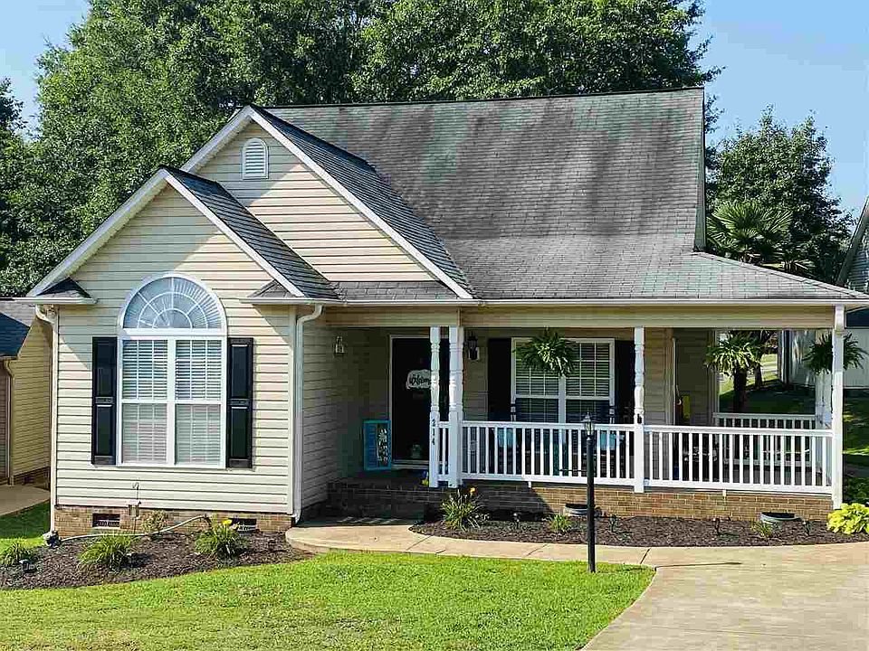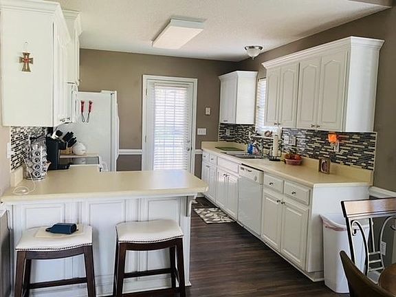 3 BR 2 BA in District 2 with new laminate flooring, split bedroom plan, tile backsplash, AC cleaned and serviced, pressure washed, vaulted Great room with gas log fireplace, master has walk in closet and double sinks, cute starter neighborhood.