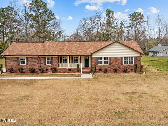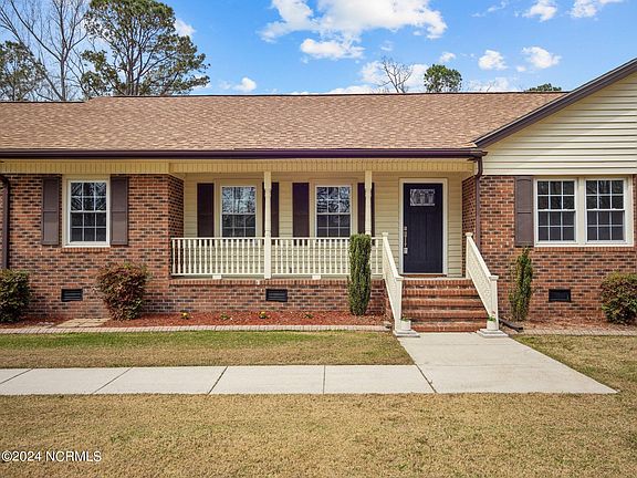 Carolina country charm at its finest! This gorgeous brick ranch style home is nestled in the highly sought-after country club/golf course, Rock Creek. As you pull into the drive you will immediately be taken aback with how well maintained the exterior is. The front covered porch is the perfect place to drink a cup of coffee, listening to all the birds welcoming a new day! Upon walking through the threshold, get ready for this showstopper to wow you! Just about everything in this home is all BRAND NEW, from the floors, to the paint, to the doors to even the hardware and light fixtures; every detail has been meticulously picked out for a true custom home. As you make your way through the front sitting room to the formal dining room, take note of the freshly installed can lights that give an abundance of lighting. The kitchen is a chef's dream!! With all new cabinets and granite countertops, along with brand new appliances, this truly is a place you would want to make memories over meals. Not to mention, the open floorplan in the second living area, gives everyone a chance to be a part of the action! Need a place for a little rest and relaxation? The covered screened in back patio is the ideal place to enjoy those cool spring nights! All the bedrooms are a great size with nice closet space and the bathrooms have all new toilets, faucets, and sinks! Upstairs has a huge bonus with a closet, and a ton of storage space for all those Christmas decorations! This stunning property is truly better than new, it's got curb appeal and an interior that is fresh, with details and features literally hand-picked. Some other new additions to take note of; all new plumbing, new ac/heating system, new duct work and vents, new hot water heater and all new electrical upgrades to include the outside meter box. Does it get much better than this? Located centrally to local shopping, entertainment, military bases, and the crystal coast beaches, this stunner will not last long!