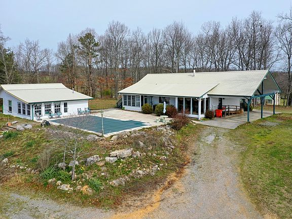 MOUNTAIN VIEWS!! A beautiful setting is what you will find when you arrive at this home which sits on over 8 acres for privacy. Come relax and sit by the inground pool and enjoy! The home features a large living room w/gas fireplace for those cozy fall evenings. Eat in kitchen/dining room with with large windows to see the mountain views while dining. Large master bedroom on the main level along with office/bedroom. The upstairs, has a huge bonus/bedroom with full bath and lots of storage. There is a 18x36 in ground pool with large patio and sunroom. The pool house offers an additional approximately 609 sq ft of space for any guests you may have. Features a small kitchen/living room and a full bath with laundry where the washer and dryer will convey. Comes with a 1 year Home Warranty!