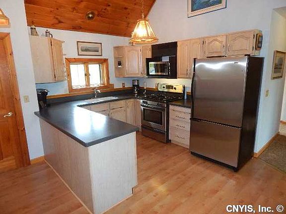 Oneida Riverfront Property minutes from Oneida Lake & Brewerton. 1600+ Sq ft, 3 Bedroom, 2 Bath, 1 car Garage w/BONUS shed. 3 Tier Deck 15' x 70' w/85' Dock for all your toys!! Beautiful Loft Master Bedroom w/Full Bath, Whirlpool Tub & Private Balcony to enjoy the River View. Living Room Cathedral ceilings feature beautiful Knotty Pine & Skylights. Sliding glass doors to your deck w/built in Stone Fire Pit for summer entertaining & Gas Fireplace to warm you on those chilly nights! Kitchen features new cabinets & S/S appliances. 10yr New Roof & 7yr New furnace! Nothing to do but MOVE IN!