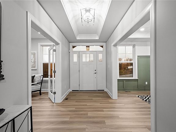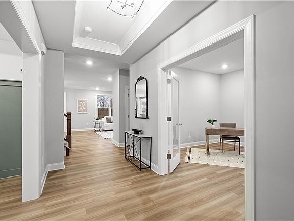 This exquisite, NEW home, custom built by Foxlane Homes offers an impressive 3,603 sq ft of thoughtfully designed space that seamlessly blends contemporary elegance with functional living. Inside you'll find LVP floors throughout the FF, where an open layout connects the FR & Kitchen. The gourmet EI Kitchen is a chef's dream boasting gas cooking, double ovens, tile backsplash, quartz tops, large island & huge WI pantry. The FR with its elegant gas FP opens to 2 patios, one covered, & large yard abutting green space, ideal for entertaining. Tray ceiling & butler’s pantry add sophistication to any gathering in the formal DR. The UL primary suite is a true retreat, boasting cathedral ceiling, large closet & spa-like ensuite with stand alone tub & luxe shower. All 3 secondary BRs feature WI closets, with one offering a private bath. Addl features include mudroom off the deep 2 car Grg, private FF office, 2nd floor laundry, large unfinished bsmt w/full bath rough-in & tankless water heater.