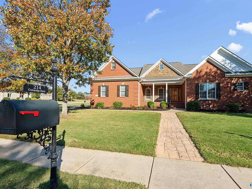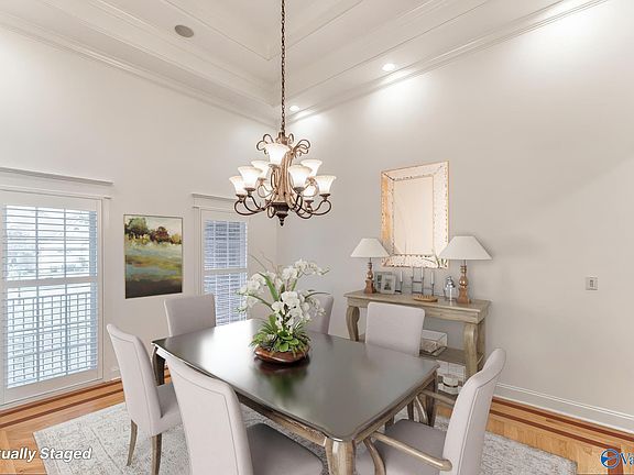 Step inside to take in the 12' ceilings, extensive moldings, open layout w/sand & finish hardwoods in this beautiful 4 bedroom home. Great room w/coffered ceiling & gas fireplace opens to dining room w/double-tray ceiling. Kitchen w/double oven, gas cooktop & walk-in pantry is open to breakfast nook & keeping room. Main floor primary suite w/lovely bath & walk-in closet. Bedrooms 2 & 3 on main share connecting bath. Upstairs bonus & bedroom 4 w/adjacent full bath. Storm shelter in garage. Outdoors covered front porch & no-maintenance deck on this large corner lot. HOA pools, lakes, tennis & fitness center. Great location near schools, dining, shopping & 565! Owner financing considered.