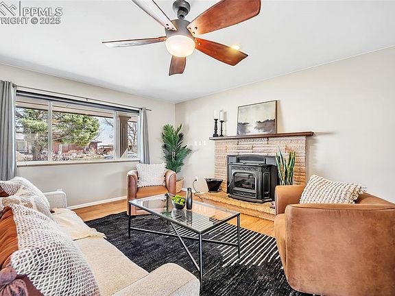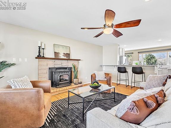 MOVE IN READY Ranch Home in HIGHLY DESIRABLE CRYSTAL HILLS! This 5-bed, 3-bath property has modern touches with a mid-century vibe. Step inside and get a peek of the UNOBSTRUCTED MOUTAIN VIEWS, starring Pikes Peak!! Natural light dances off the walls and creates a warm inviting place for entertaining both family and friends! The kitchen features painted cabinets, quartz countertops and a panoramic view of the front range! This home spoils the master bedroom with private access to the 46x12 composite deck! Enjoy coffee from the deck and a direct view of the MANITOU INCLINE! Watch hikers with head lamps start at dawn or the breath-taking SUNSETS that change color E-V-E-R-Y DAY! This brick home includes 2 pellet stoves that keep you warm during those cold Colorado nights. The mudroom next to the kitchen has been remodeled with abundant cabinet space that leads to the oversized 2 car garage that has ample storage! The lower level is ready for game nights and parties with the rec area that features a bar. Remove the wall behind the bar if you want to personalize a Man Cave with kitchen creature comforts! This lot backs to open space and is over 9,000 sf. Nestled in scrub oak, trees, and blooming flowers through spring, summer and fall! The backyard astro turf and golf tee is ready for family fun or warm up before the season starts! Intemann trail, Red Rocks, and Garden of the Gods are at your fingertips to ride, bike or hike! This garden level home has an expansive deck and a 16x 20 patio in the back. Other amenities include: hardwood floors throughout the main level, bathroom tile on the main level updated in 2025, interior paint updated in 2025, 2 yr old AC, doggie door, 2yr old furnace, gas stove, washer, dryer, astro turf in the front yard, and MANY MORE!! Every time you come home, you will see Garden of the Gods greeting you and the front range saying goodbye. COME MAKE THIS HOUSE YOUR HOME TODAY!!