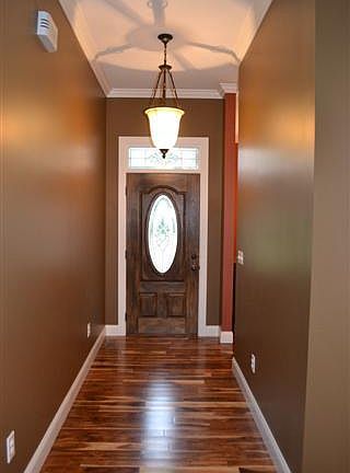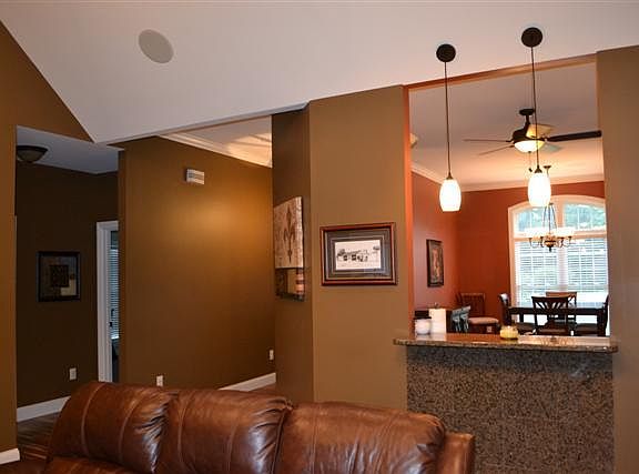 Walnut floors, tile, granite, 10' ceilings, stainless appliances, pantry, whirlpool tub, huge tiled shower, built-in surround sound speakers in living room w/cathedral ceiling, outdoor speakers on the deck, gas wall heater in garage, privacy fence & more!