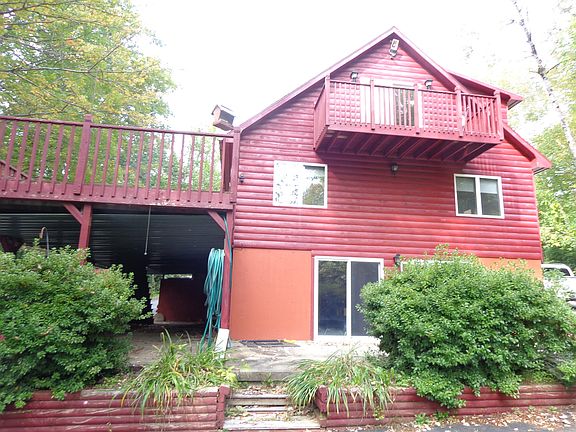 Three-bedroom cape with detached three car garage with loft and office above. Property features first floor kitchen, open concept dining and living room with propane insert in fireplace, first floor bedroom, full bath and awash room. Second floor has two large bedrooms and one with a deck along with two full baths. The basement has a den with a woodstove, small kitchenette area with two areas one with a shower and the other with half bath and another room described as other.