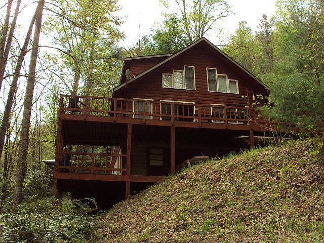 Tranquility redifined! Cedar Log Home on BUCK CREEK.. BIG rushing water, falls and beauty are yours here in this lovely mountain hide-a-way! Plenty of outside decks.. This home has hardwood flooring throughout, a good sized single car garage/basement and a monster sized upper level bedroom, with bath and a den/media room. Located between Franklin and Highlands NC off Buck Creek Road... seriously, this is a nice home in a very unique and theraputic environment..
