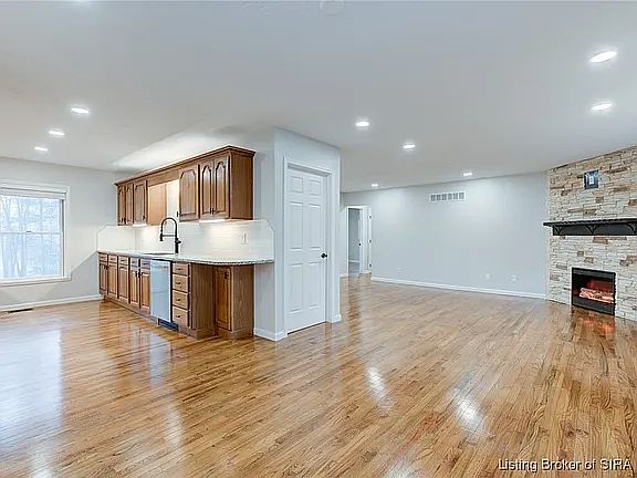 Located in the highly sought-after Southern Hills neighborhood, this home gives you that "vacation-every-day" feeling with access to an 80-acre neighborhood lake. Fully remodeled from top to bottom, it's designed to impress! The home boasts fantastic curb appeal with a newly expanded, asphalted driveway, luxury landscaping, wood shutters, and brand-new front and side decks. Inside, beautiful hardwood floors span most of the upstairs, highlighted by a cozy electric fireplace in the living room. The kitchen includes high-end LG appliances, granite countertops, white subway tile backsplash, and both up and down cabinet lighting. The bathrooms feature white tile, a tile shower, a jetted tub, backlit mirrors, and Bluetooth-enabled exhaust fans. Downstairs, the large living area includes a wet bar and additional full bathroom, ideal for entertaining. The side deck is perfect for gatherings, with a custom walkway connecting it to the driveway.