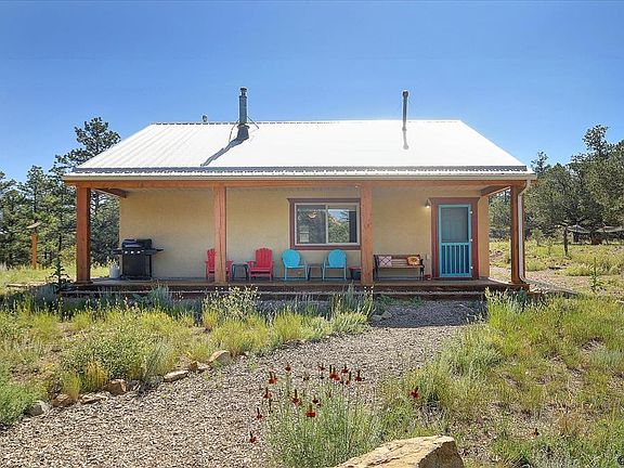 Welcome to your idyllic off-grid retreat nestled on a picturesque 6-acre parcel of land, offering captivating mountain vistas. This charming 2-bedroom, 1-bathroom cabin, encompassing just under 900 square feet of thoughtfully designed living space, promises a lifestyle of tranquility and self-sufficiency. This cozy abode boasts a warm and inviting atmosphere that complements the rustic charm of the landscape. The open-concept living area is bathed in natural light streaming through large windows. While the two cozy bedrooms provide comfortable havens for restful nights, and the shared bathroom reflects a tasteful blend of functionality and aesthetics. However, the spacious porch might just be the perfect spot to savor morning coffee while gazing at the majestic mountains or to gather with loved ones for evening stargazing and storytelling. A new 8x12 tall storage shed provides plenty of additional storage. With no HOA or covenants to restrict your vision, this cabin offers a world of possibilities. The charming town of Westcliffe is less 20 minutes away, with shopping and dining. Call today for a tour of what could be your next adventure!