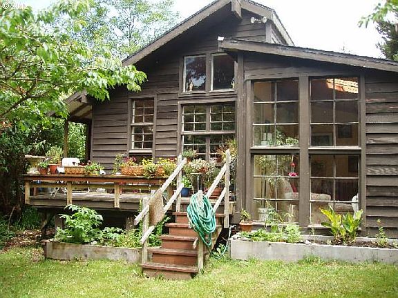 Adorable home with great backyard, private detached studio, and cabin-esque qualities. A large wood-paned window in the living room reaches from the ceiling to the floor with views of the landscaped yard, creating the feeling of being in your own personal solarium!