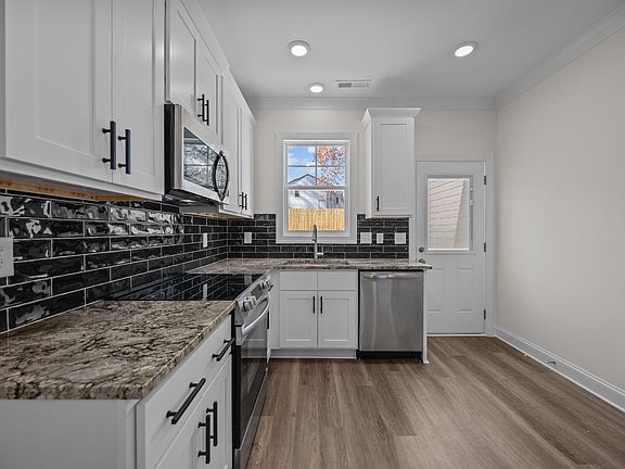 NO HOA and 100% USDA Financing Available! Calling all investors - Perfect for rental properties! This charming RANCH plan by Genesis Building Company! Beautiful upgraded LVP flooring span throughout the main living areas! Designer lighting and crown molding throughout! Kitchen: granite countertops, custom white painted cabinets with crown trim and matte black hardware, single-bowl stainless sink with a window above overlooking the backyard, stainless steel appliances, recessed lights and french door to the rear grilling patio! Owner's suite: offers crown molding, ceiling fan with light and en-suite bath with painted dual vanity with granite top and rectangular sinks, large walk-in shower with transom, linen closet and spacious walk-in closet! Family room: open concept perfect for entertaining with crown molding and ceiling fan! Rear storage closet for extra storage space!