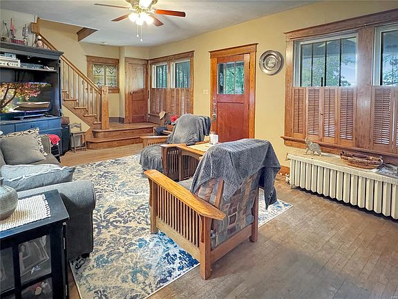 Downtown conveniences with Missouri River view while sitting on the front porch. This 1 1/2 story has so much to offer from original woodwork, wood floors, stained glass windows, french doors, and 2 staircases. The entry staircase is beautiful. Large Living room with fireplace that opens to the dining area and french doors to den or office. Spacious eat-in kitchen with planning area, a door to the back yard, and a 1 car garage. Upstairs are 3 bedrooms and a bath. LL is unfinished. Coming soon showings start Saturday with a 24-hour notice for approval from the seller. Selling As IS!