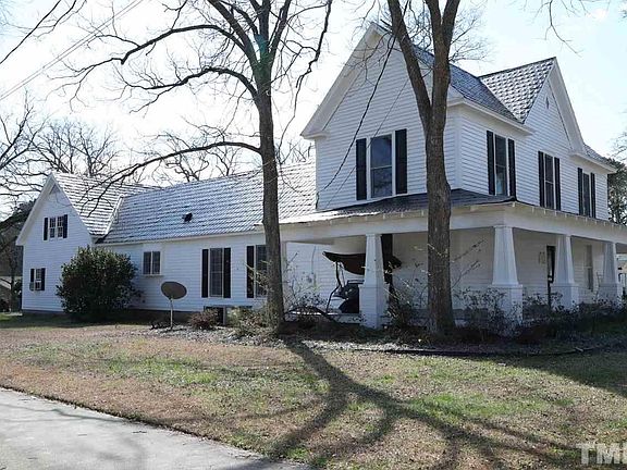 Charming restored 1911 home in Historic district of downtown Fuquay. Front and side porch for rocking. Walk to Fuquay Springs, shopping or many downtown events. Beautiful original wood floors. Living and family room have fireplace with gas logs. Fancy tin ceiling adorns the FR ceiling. Maple cabinets in kitchen w/walk-in pantry. The workshop upst can be finished for a bonus room. .54 ac lot Private side entry garage. Freshly painted inside and out, new porch and concrete steps and walkway.