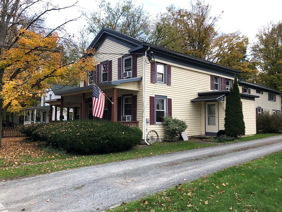 SPACE GALORE! This historic era home boasts large front porch, main entry, living room, den, full bath, dining room and large eat in kitchen with laundry area and mudroom PLUS master suite on the first floor. 2 staircases go upstairs to 4 more bedrooms, full bath and plenty of closet space. Large deck w/hot tub, dining area and a big yard on a double lot. Back part of the house has one bedroom apartment that is rented. There is a large garage and tiny house with kitchen, full bath and bedroom-another rental opportunity. New windows, siding, & kitchen cabinets. Must be seen to be appreciated!