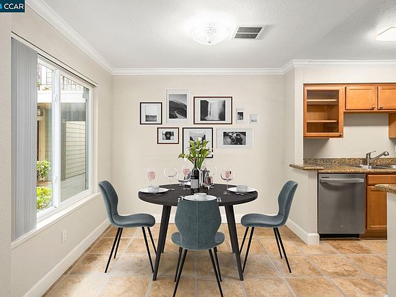 Serene two-bedroom, one-and-a-quarter-bathroom residence in this coveted gated San Ramon community is situated in one of the best locations in the development. This lovely unit benefits from an unobstructed outlook of the green ridge right outside. Enjoy blue skies and verdant views every day. This special position affords the owner extra privacy, quietness, and sunlight. The practical layout boasts a darling living room with fireplace, spacious patio, dining area, kitchen with mini walk-in pantry, in-unit laundry, air conditioning, and two ample sized bedrooms. Community amenities include a glittering pool and a robust gym, mere steps away from the unit. Gated entry with attendants at the community’s entrance offers security and peace of mind. The covered parking space located very close to the home makes coming and going a breeze. Minutes from City Center Bishop Ranch ( Equinox, Slanted Door, Philz Coffee), library, freeway, and dining and shopping plaza this is super convenient living. Wonderful opportunity!