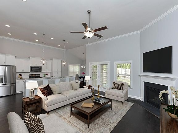 The Allerton floorplan welcomes you into gracious open concept living at its finest with smooth nine-foot ceilings that give way to twelve-foot vaulted ceilings once the entry way threshold is crossed. This gorgeous ranch-style home has that highly desired open kitchen, great room, and breakfast nook. Keep strolling and you'll be able to relax on your spacious covered porch overlooking a protected wooded area. Enjoy exclusive luxury vinyl plank flooring, quartz countertops, and much, much more! This gorgeous functional floor plan rests on a homesite that overlooks nothing but ponds and protected wooded areas. This has now become a unicorn at this price point! It won't last long! Closing in July/August!