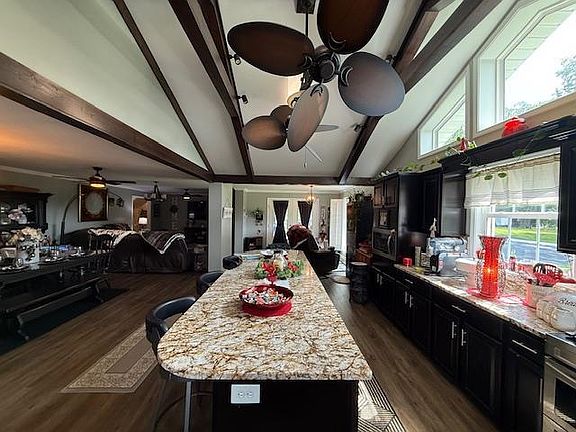 - 1st Floor Bathroom, 1st Floor Bedroom, Beamed Ceilings, Cathedral Ceiling(s), Ceiling Fan(s), Crown Molding, Textured Ceilings, Vaulted Ceiling(s), Walk-In Closet(s)
