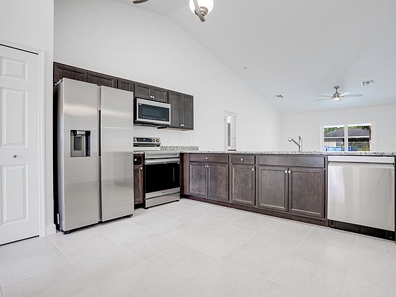 SELLER CREDIT $5,000 -- NEW BUILD 4-bedroom, 2-bathroom home on a spacious 1/4 acre interior lot. This residence features vaulted ceilings with an open atmosphere. Enjoy the convenience tile flooring throughout, paired with stainless steel appliances in the kitchen. The home is equipped with impact-resistant windows for added safety and peace of mind. Step outside to a covered patio, ideal for relaxing and entertaining. Builder warranty available