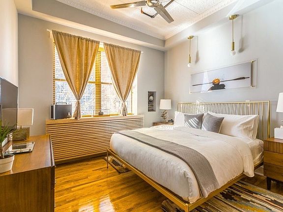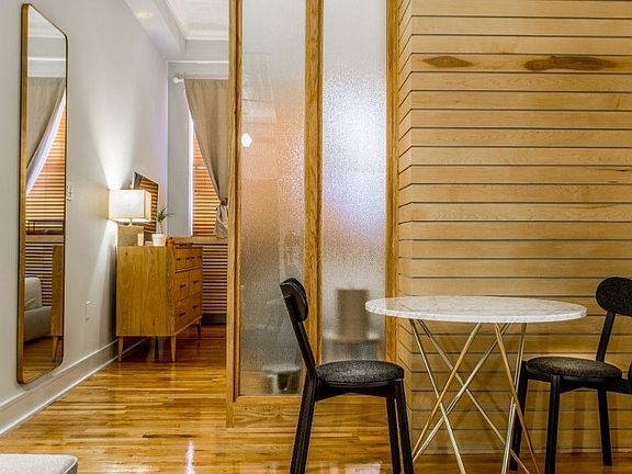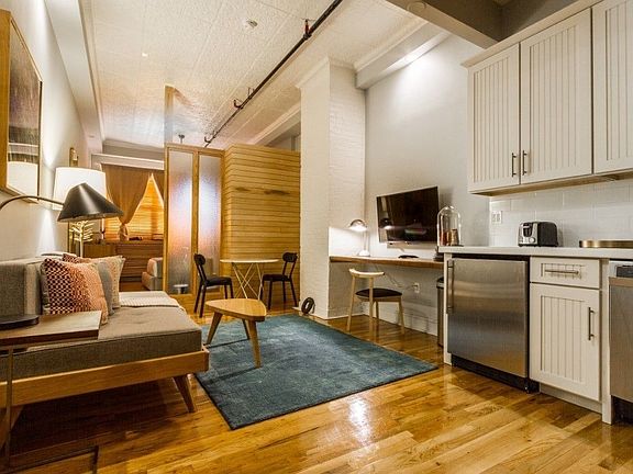 Beautiful renovated Loft in converted factory on Franklin St. Gorgeous Alcove Studio Loft This gorgeous loft features beautiful custom details throughout including custom wood and glass partition creating a separate sleeping area from the living space. There is a kitchen with dishwasher and microwave, and stunning marble bathroom with deep soaking tub. High ceilings and hardwood floors. Schedule a viewing today. *Kitchen has been updated and now features a full size refrigerator