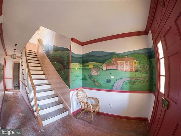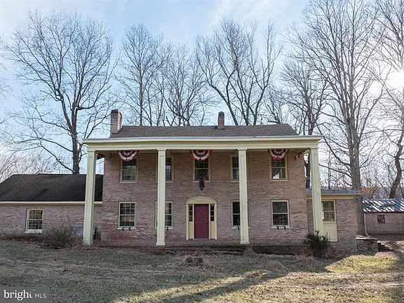Unique opportunity to own a beautiful 10 acre estate w back creek frontage! 3 level colonial featuring kitchen w brick fp oven, sun room, mud room, library, attached garage and master suite w 2nd story walk-out deck! The estate has features a guest house, efficiency apartment, 3 car garage workshop, green house, smoke house, chicken house, and pond! New roof, new heat pump, lots of potential!
