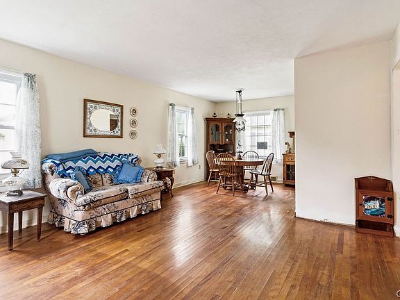 **Multiple offers received. Seller is requesting best and final offers from all parties by Monday 7/22/24 at 3PM.** Beautiful 3 bedroom 1.5 bathroom 1,265 sq ft cape cod with spacious heated detached garage. Exclusively first floor living possible if desired, with first floor bedroom, first floor laundry and remodeled first floor full bathroom with walk-in shower. First level features hardwood flooring throughout living room, dining room and bedroom. Formal dining room sits wide open to living room. Tile floor kitchen with door leading to the back yard and phenomenal 16' x 26' detached garage with heat, giving outstanding space for a workshop in all seasons. Separate 12' x 12' shed with concrete floor and overhead door keeps your garage space freed up for use. Second level features two spacious bedrooms and a half bathroom. Central air to keep you cool on those hot and humid summer days. Location makes for very manageable commute to Syracuse or Oswego.