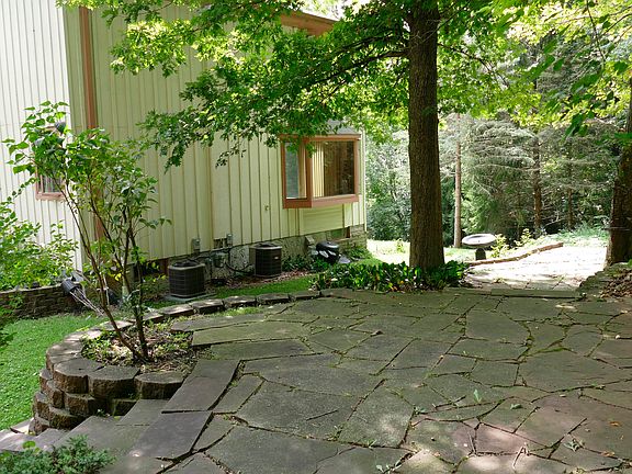 Park like setting on this 1+ acre wooded lot located off a secluded court in the heart of Lake Country in Delafield. Nature abounds on this hilly lot with plenty of wildlife throughout the property. Enter this open concept almost 2500 sq. ft. four level home, upper level featuring a spacious MBR with 10ft. cathedral ceiling and private Master Bathroom. The outside of the home has spectacular wrap around stone decks and walkways hand constructed from Colorado Fieldstone. The backyard features a split level stone retaining wall 15ft. in height and 250 ft. in length. Mature Oak Trees and Silver Spruce Trees make for a one of a kind scenery. Home is very unique. Located on a 250ft. uphill from the main court which has an island of trees creating a natural separation from the other properties.