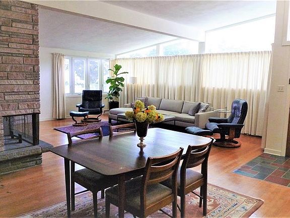 Don't miss out on this authentic Schopfer designed mid century contemporary! Soaring ceilings and open floorplan make this so appealing. A large stone fireplace and original mahogany built-in complete the great room. The eat-in kitchen adjoins a charming jalousie windowed porch. The backyard is spacious and partially fenced. 3 bedrooms with great closet space. The bathroom has updated shower and lots of room. Lower level is completely sheetrocked with amazing office or playroom space as well as workshop. There is a bath and laundry downstairs. 2 car attached garage. Tons of updates! New roof, most windows, new flooring in kitchen and bath, updated furnace and central air.