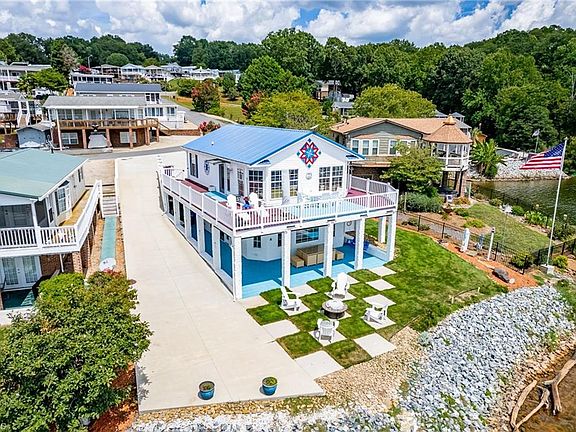 Do not miss this rare opportunity to own a WATERFRONT Modular home beautifully updated & furnished in Badin Shores Resort. You will not find a better view at Badin Lake than the view from the deck of this property.....open water views.... train trestle views....Uwharrie Mountain Views. The main level of the home offers a wrap around deck & the lower level offers a covered concrete patio area. A few of the features this home offers include: recently remodeled kitchen with new cabinetry, marble counter tops & updated stainless appliances, updated flooring & paint through out the home, beautiful furniture & decorator touches, custom blinds on all windows, water filtration system, fire place with gas logs & a wet bar in the lower level living area, utility/storage area downstairs, electric car charging capability, recently concreted driveway & parking area, sunshade blinds around the exterior of the lower level (front shades electronic), Zoysia grass for low yard maintenance and much more