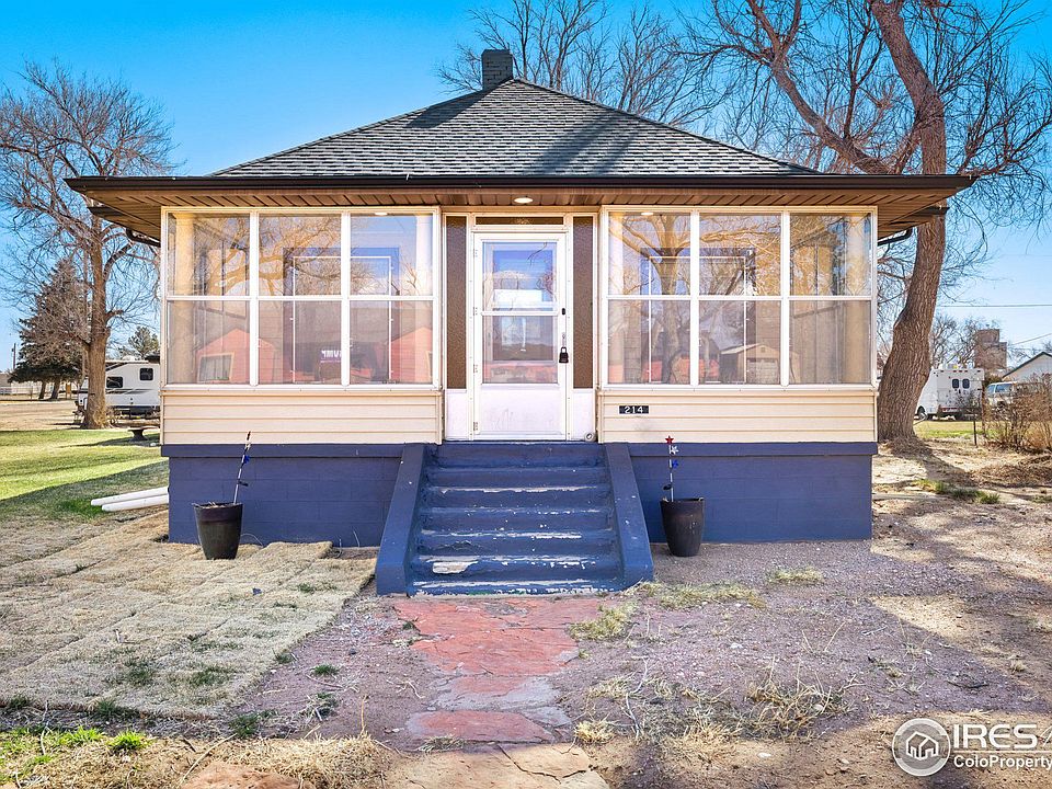 Welcome home to this quaint bungalow style home in the small town of Nunn. Pride of ownership is displayed with the recent upgrades. Walk thru the welcoming enclosed front porch into the refinished wood floors in the living room and dining. Front room can be an office or bedroom with pretty french doors. Separate dining with a beautiful built in china hutch. Kitchen has been remodeled with new island, flooring and wrapped beams. Everything is new in both bathrooms too! Basement features a finished bedroom, 3/4 bath and room to grow. HVAC, water heater and attic insulation new in 2021, new plumbing, electric and septic system in last 3 years. The roof is only 4-5 yrs old. Enjoy the large deck facing East this summer. Room to park your toys with OVER a 1/4 acre corner lot with alley access. Property being sold As-Is.