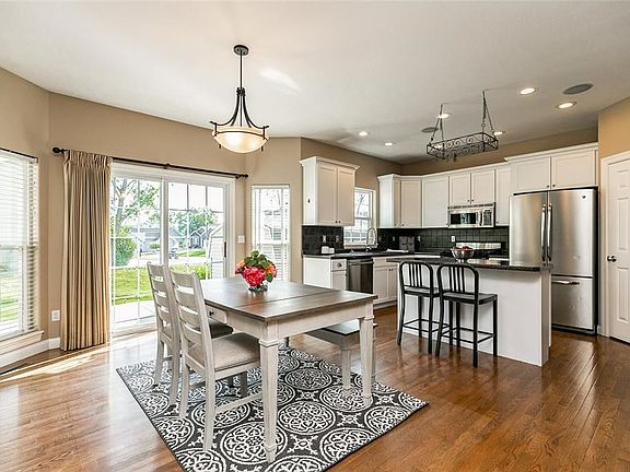 Don't miss this beautiful 2 story in the desirable Lost Quarry neighborhood & close to restaurants, shopping, parks & trails! The adorable front porch opens to the 2 story foyer with eclectic flare featuring a beautifully carved railing. The spacious living room with gas fireplace with tile surround opens to the daily dining area and large kitchen. White cabinets with black laminate counters and black tile backsplash are accented by the darkwood breakfast bar & perfect for your morning coffee. Stainless steel appliances including a gas range. Formal dining is just off the daily dining area and glass sliding doors welcome you to the backyard. Also on the main level is the updated mudroom with lockers. Washer/dryer hookups also provide the option for main level laundry. Upstairs you will find the large primary bedroom with his and her closets and en-suite bathroom with dual vanity. 3 additional bedrooms and an additional full bathroom upstairs. The lower level offers a large rec room, a 3rd full bathroom, and laundry area. Other features include in-ceiling sound system in the kitchen, living, dining rooms and patio, irrigation system, shed with doggy door, and new roof!