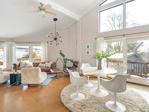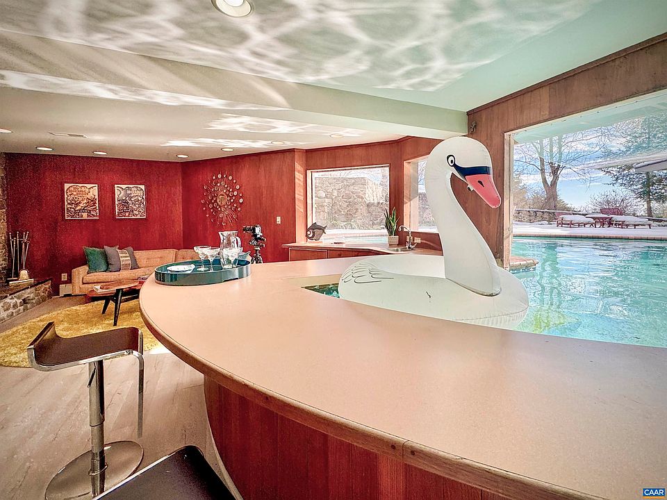 This truly unique condo, conveniently located in Huntington Village, is a rare offering. Perfect for entertaining, this end unit boasts open spaces, vaulted ceilings, and over 1,100 square feet of brick patio surrounding a remarkable pool that extends into the basement rec room with a swim-up bar! The current owner has preserved much of the original mid-century charm while incorporating modern updates, including remodeled bathrooms with a steam shower, brand-new basement flooring, and a home theater. During the cooler months, relax by one of the three wood-burning fireplaces. When summer arrives, retreat to your private pool oasis, surrounded by stone walls and mature landscaping, offering complete privacy. Despite the tranquil setting, the property is just minutes from the University and downtown. This exceptional home is truly one of a kind, and it will be difficult to find anything comparable.