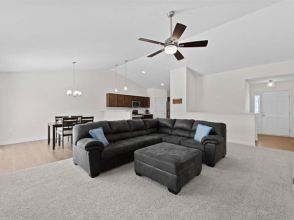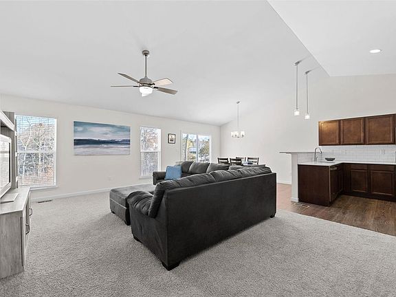 This gorgeous ranch built in 2022 has a finished walk-out lower level & fenced yard backing to trees offering peaceful privacy. Snuggled in the back of the neighborhood on a private (not through) street, the open main living area has soaring vaulted ceilings allowing for full views of the woods. Well-appointed kitchen w/quartz counters, soft-close cabinets, subway tile backsplash, walk-in pantry + 2nd pantry, & stainless steel appliances, including a 5-burner gas range & fridge (stays!). Private primary suite w/walk-in closet. Spacious rec room & 4th bedroom/home office in the finished walk-out lower level, w/plenty of additional unfinished storage space & a roughed-in bath. Deer Ridge Park is just down the street w/miles of wooded hiking trails to explore. Easy access to I-64/364/70 & close to great shopping, dining, & conveniences, including the fun farmer's market at The Meadows. Wentzville (Timberland High) Schools. Such a great nearly new home! What an opportunity! See it today!