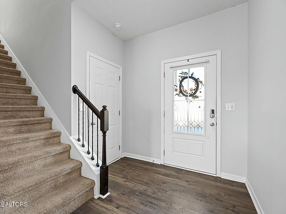 Beautiful 4-bedroom, 2.5-bath home with Lake Views & Modern Upgrades in the desirable Harbour Cove community! This two-story home features an open-concept design with gorgeous wood floors throughout the main level and a spacious living area that flows seamlessly into the gourmet kitchen. You'll love the huge kitchen island, perfect for entertaining, along with the gas cooktop, stainless steel appliances, and LG InstaView refrigerator. The large eat-in dining area makes hosting a breeze! Freshly painted interior throughout with brand-new carpet upstairs, this home is move-in ready. Enjoy energy-efficient living with a Rinnai tankless water heater and a 220-volt electric car charger in the garage. Step outside to the peaceful patio with gazebo, where you'll take in breathtaking views of Melton Hill Lake and Haw Ridge Recreation Area—a paradise for outdoor lovers, offering fishing, hiking, and biking trails just steps away. Conveniently located just minutes from both Oak Ridge and Knoxville, this home offers the perfect blend of serene surroundings and easy access to shopping, dining, and top-rated schools. Don't miss this incredible opportunity—schedule your private showing today!