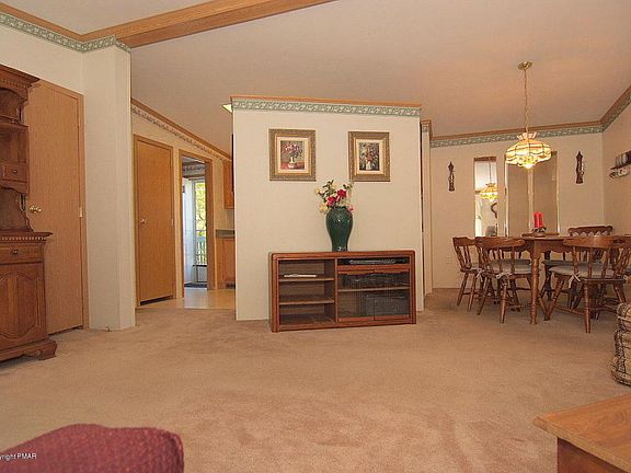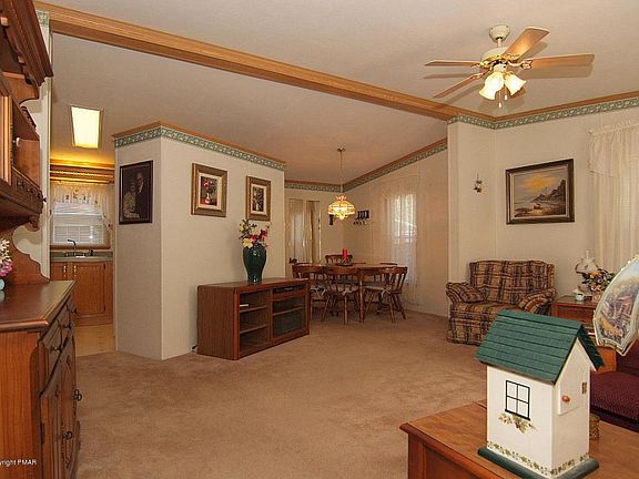 Retire neatly in this 55+ Mobile Home Park located conveniently in East Stroudsburg with area conveniences nearby. Features include 1056sf Double-Wide Home on a Solid Concrete 3-ft Crawl Space, 15 x 11 Master Bedroom w/Bath, 2nd Bedroom with Hall Bath, Open Living/Dining Combo with Large Kitchen & Laundry Room at back door to Deck, Central A/C, Gas Heat & Cooking. Utility Shed. Fiberglass Insulation. A Screened Porch at front makes for friendly enjoyment of the Corner Setting with Shade Trees and Pleasant Views. Walk to Brodhead Creek and Hike or Bike the Levee Loop Trail to Dansbury Park. Low Taxes of $1,868/yr with Pad fee of $480/mo. that includes Water & Sewer. Nice Floor Plan. Best location in the Park.