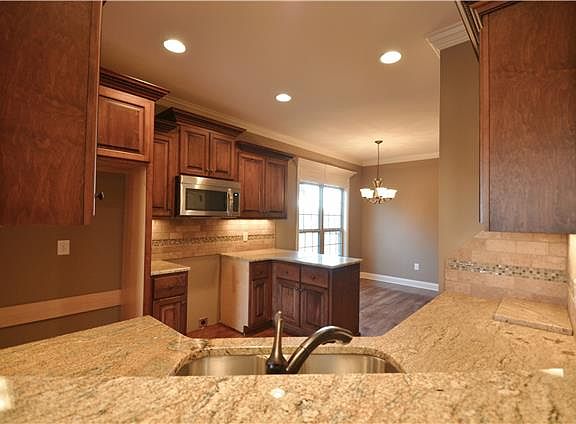 Savannah Plan-Modified, 3/4 Hardwood in Foyer, GR, Kit, Dining, Tile in all baths & Utility. Lg Kitchen, Granite, Stainless Appliances, Fireplace w/gas, Tile shower & Granite Master, Covered Patio & Beautiful trim work throughout.