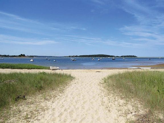 Located on a very private lane in N. Chatham, this 3BR/3BA Cape style home has the right to pass, with vehicles or on foot, to the shore of Pleasant Bay for boating or bathing. Great rental history (available upon request) for this popular home with a combination of the old and new. Bright and airy interiors throughout, a large master suite that encompasses the entire second floor, vaulted ceiling and skylights in the kitchen/family room, two bedrooms and two baths on the main level, and a partially finished basement level. Renovated in roughly 2000-01 by Stello Construction this property offers great privacy for an investment property with beach access or year-round home. Room measurements are approximate. Buyer to confirm.