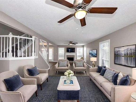 Welcome to this 4-bedroom, 2.5-bath, 2,308 sqft single-family home nestled in the highly desirable Parkside community. This stunning two-story residence combines style and comfort with a beautiful blue exterior, accented by white trim and a welcoming front porch with elegant columns. The meticulously maintained front yard, lush with greenery and manicured bushes, offers inviting outdoor enjoyment, while a spacious two-car garage provides convenient parking. Multiple saddled and a pitched roof add architectural elegance, giving this home exceptional curb appeal. Step inside to a spacious, open living room featuring light brown walls, a subtle textured ceiling, and two ceiling fans with lights for enhanced comfort. Wood-like flooring lends warmth, while large windows with white blinds fill the room with natural light, creating an inviting ambiance. This flexible, open layout is perfect for both relaxation and entertaining, with a staircase featuring white railings leading to the upper floor, adding a touch of sophistication. At the heart of the home, the modern kitchen shines with sleek white cabinetry, countertops, and top-of-the-line stainless steel appliances, including a refrigerator with water and ice dispenser, a gas stove, and a microwave. A large island serves as an ideal prep space and casual dining spot, while a mosaic tile backsplash in warm tones adds an elegant accent. Ample natural light fills the room through a window above the sink and double doors leading to additional spaces, making this kitchen a welcoming hub for cooking and gathering. Adjacent to the kitchen, the dining room offers an elegant space with neutral beige walls, white trim, and a charming chair rail. Two large windows with white blinds allow natural light to enhance the room's warm and welcoming atmosphere, while a sophisticated chandelier and dark floors create an inviting setting for family meals and entertaining guests. The spacious primary bedroom serves as a tranquil sanctuary with soft beige walls, white trim, and ample room for a king-sized bed and additional furniture. Light floods through a large window dressed with white curtains, while a ceiling fan with an overhead light ensures comfort. This room's restful ambiance provides the perfect retreat for unwinding. The luxurious primary bathroom feels like a spa with a double-sink vanity, sleek white countertops, and chrome faucets. Two large mirrors with light fixtures offer excellent illumination, while a glass-enclosed shower and a separate bathtub with a tiled surround create a serene environment. The bathroom also provides easy access to a walk-in closet with built-in shelving, ideal for organized storage. Experience the beauty and comfort of this exceptional property in Parkside! Schedule your private showing today and envision your life in this inviting and stylish home.