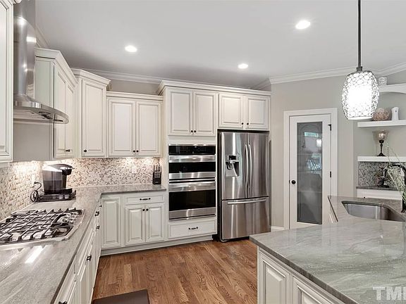 Parade of Homes Bronze Winner! 4 bedroom home w/1st & 2nd floor master bedrooms w/attic space, dining rm w/ 2 separate closets, breakfast nook, living rm, kitchen, foyer, large bonus rm w/built-ins, closet & 2 large attics, finished garage w/bump out work area + parking pad, fenced yard w/raised deck, patio & screened porch overlooking wooded backyard. Laundry room has built-in cabinetry & tile flooring. Hardwood on 1st floor, steps & upstairs landing. Tankless water heater, SS appliances, gas stove & FP.
