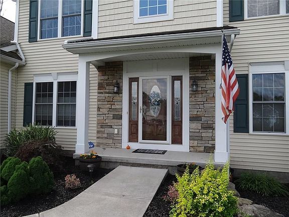 Spectacular offering, each spot you look, there is an upgrade! Low traffic cul de sac setting, home offers rich exterior presentation with stacked stone, vinyl cedar shake, architectural roof with intricate roof lines and front porch. 8 foot overhead doors a must for modern day trucks. Even the garage is decked out with textured ceilings, finished drywall complete with custom paint job and casement trim. 2 story grand foyer and 9' ceilings offer volume.Beautifully ceramic tiled flooring in entry/kitchen/laundry and baths. Hardwood dining rm floor. Kitchen offers ample and high grade cabinets, granite counters of course! Stainless kitchen appliances included. Spacious great room complete with gas fireplace and elaborate wood mantle, surround sound including speakers and amplifier included.