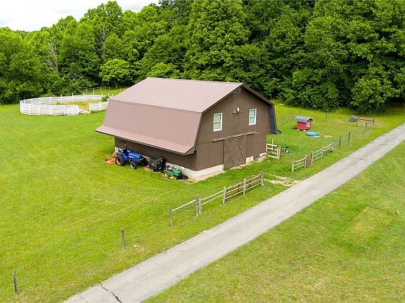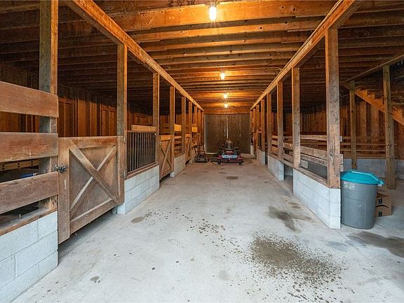 Nestled on over 37 Level acres, this property offers the perfect blend of privacy, natural beauty, and modern comforts. A fenced paddock follows alongside the long driveway, leading to the barn, ideal for horses or other livestock, adding a touch of rustic elegance to the landscape, 2nd floor is a workshop. Step inside the home & be greeted by the expansive living rm, boasting a custom, floor-to-ceiling, rock wall fireplace as its centerpiece. An open concept design connects the living area & dining area, with timeless oak tongue-groove walls. The well-appointed kitchen features brand new appliances & heated tile flooring throughout. Main level has a potential den or even a second primary bedroom with full bath. The upper level has three spacious bedrooms, each accompanied by its own full bath. Private upper deck 16x15 leads to small, fenced area. Attached two-car oversize garage for no steps. Large covered front patio 29x26. Geo-Thermal Heat is an energy bonus.