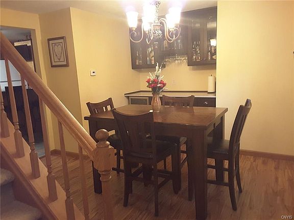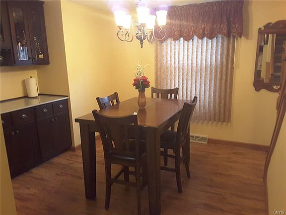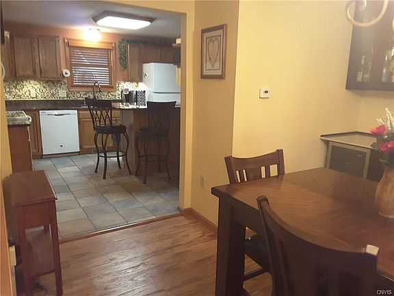 This beautifully maintained and tastefully updated cape is just an 8 min. drive to downtown. Featuring 3 bdrm, 2 bath, 1 of each on the main floor, a cozy basement family rm adds approx. 225 sq.ft., and an updated kitchen with plenty of granite countertop space, & a breakfast bar. The dining rm features a built in bar with solid oak Amish built cabinetry and a wine chiller fridge. Forced air central heat & a/c keep the house comfy at an affordable price. Thanks to Solvay electric, the total energy cost averages just $90/month. Outside, there is a matching 12x24 shed/garage for workshop, classic car or bikes. With the carefree landscape with updated entry walk and steps, recent new roof & gutters front and rear with leaf guards, you'll find plenty of time to relax on the 12x24 patio deck.