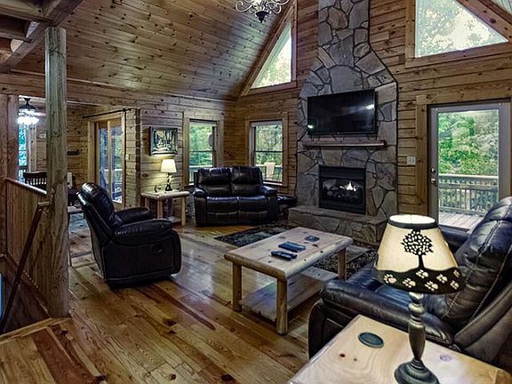 WATCH FOR ADDITIONAL PHOTOS ON MONDAY 8/3 Lake Front Living the way you want it. Walk to the water, set on the expansive lakeside deck and moor your boat in your own covered aluminum dock. Open custom kitchen to dining and great room. Cathedral ceilings, fireplace and access to two levels of decking for the ultimate experience in outdoor living. Master on the main floor with bath and large walk in closet. Two guest bedrooms and bath up with a bunk/play/flex room and full bath down. Currently in a very successful rental program. Make your plans ahead to see the dynamic log home.