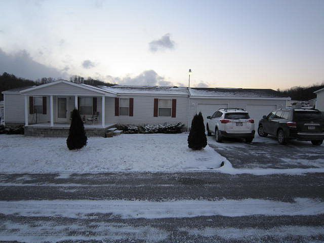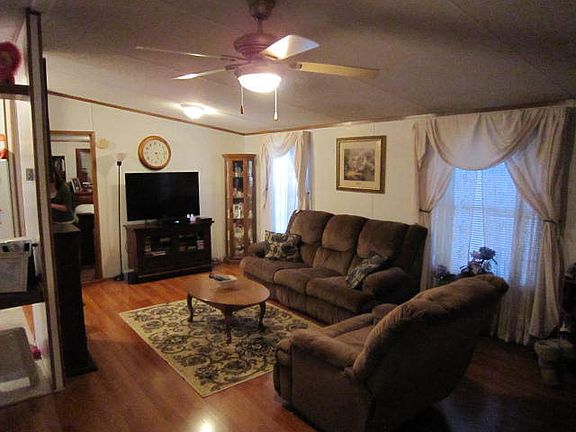 This home is located in Christian Fork Estates which is a restricted double wide community. Home has two car garage attached on perfectly level lot. Landscaped pond with garden arbor. Large wooden deck off dining room. Three bedroom and two bath makes this a comfortable floor plan for the young starter family or the down sizing customer. This home is on a permanent foundation with a nice front porch. Seller has priced this home to move quickly. Large living-dining room combination featuring wood laminate floor.